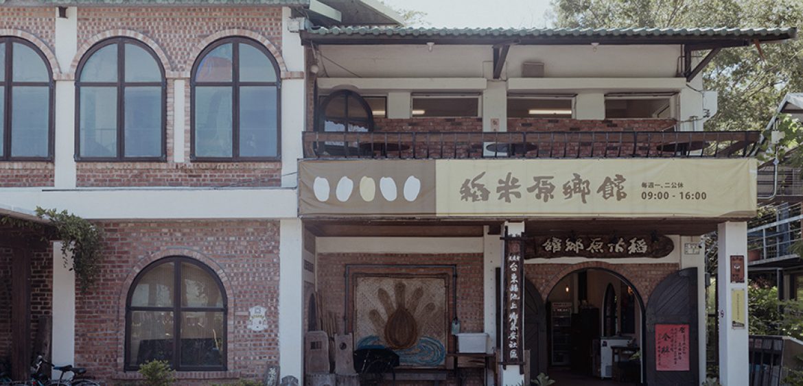 來到池上鄉,走近伯朗大道、天堂路一帶時,總會被一棟古色古香的建築吸引,白色牆面搭配紅磚外觀,門口還立著稻草人與牛車,樸實又充滿懷舊氣息,這裡便是【稻米原鄉館】,一個結合在地特色、文化教育與美食體驗的多功能場域。
