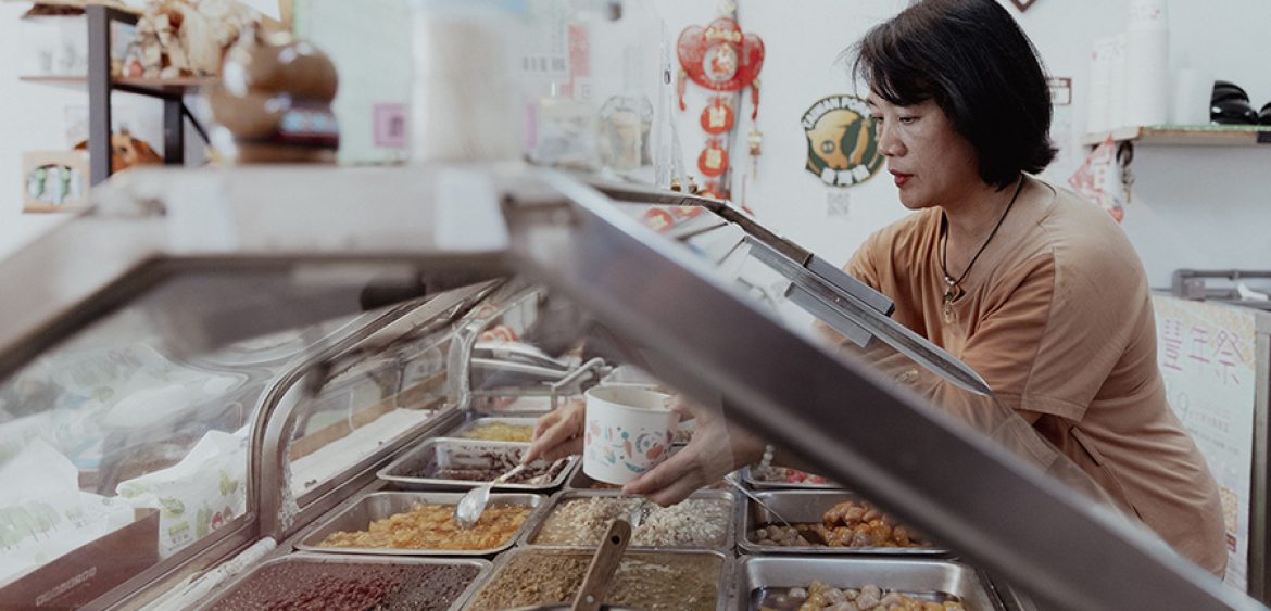 午後的池上,陽光斜灑在小鎮街道,幾名旅人停好腳踏車,走入一間外觀樸素的豆花店。尚未踏入,空氣中便已飄來淡淡豆香;檯面上陳列著紅豆、花生、小粉圓與當季蜜漬果實,旁邊的鍋裡正咕嚕熬著糖水,這裡是「原鄉豆花」,一碗看似簡單的甜品,凝結了老闆娘劉洪瑛在池上近三十年的生活與情感。